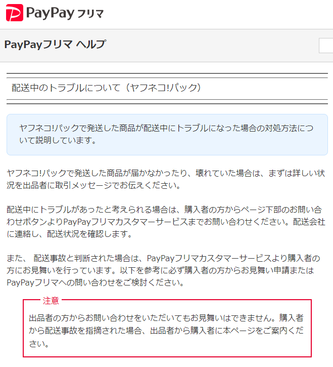 Paypayフリマ ヘルプ【配送中のトラブルについて(ヤフネコ!パック)】